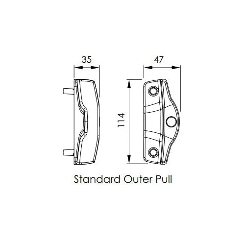 Reliable all-metal lock for aluminium sliding doors. Once the door is closed, the twin beaks are operated by key or lever to engage the catch plate.