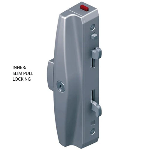 Surface mounted lockset suitable for use with most aluminium and timber sliding doors. The flexible chassis coupled with innovative design features results in a non-handed product that is extremely easy to install and suitable for new and most retrofit applications.