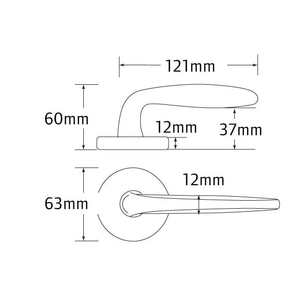 - Passage Set – Supplied with 60mm backset passage latch. Both levers always unlocked.