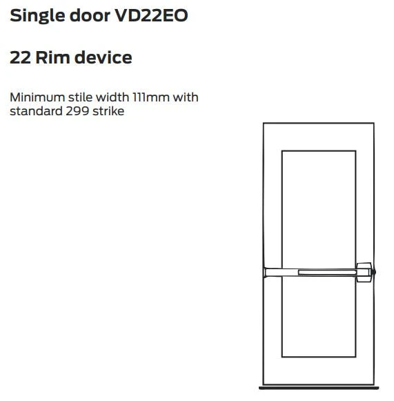 The 22 Series are Von Duprin’s entry level exit devices, incorporating a modern touch bar styling for all types of doors. The 22 Series can be used on timber, aluminium or hollow metal hinged doors. Available in rim and surface vertical rod styles. The 22 Series is traditionally used in commercial buildings such as warehouses, factories, schools and shopping centres.
