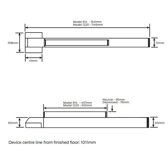 - Device centre line from finished floor: 1011mm