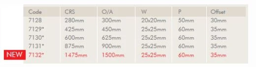 ITEM VARIANTS SHOW CENTER TO CENTER MEASUREMENTS (SEE TABLE)