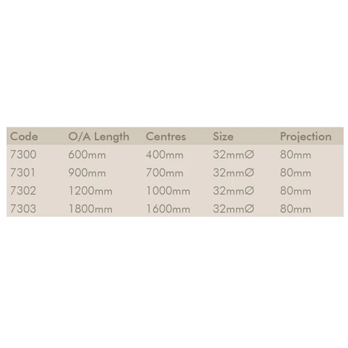 – Overall Length 600m, 900mm, 1200mm or 1800mm